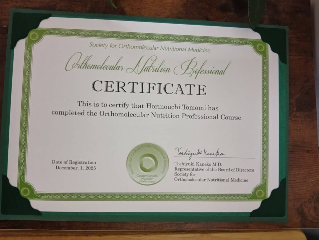 この度、正式に Orthomolecular Nutrition Professional(ONP) の資格ディプロマが届きましたので、ご報告させていただきます。